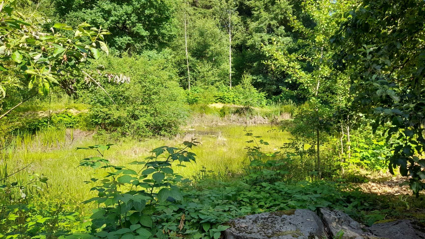 - Ausgetrockneter Teich des Dachsenbergbaches an der Ochsenkopfhütte
